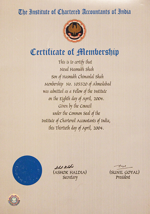Certificate of Fellow Membership of ICAI