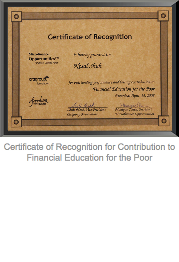 Certificate of Appreciation for Providing Services as Hon. Secretary to Chartered Accountants Association, Ahmedabad