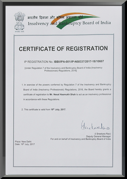 Certificate of Registration with Insolvency and Bankruptcy Board of India