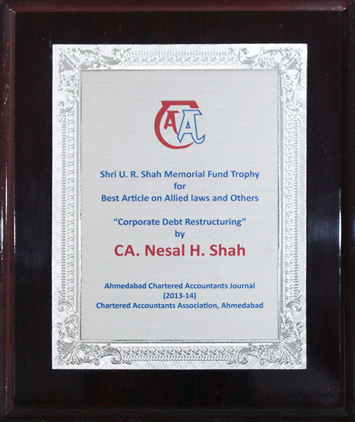Best Article Award on Corporate Debt Restructuring in Ahmedabad Chartered Accountants Journal